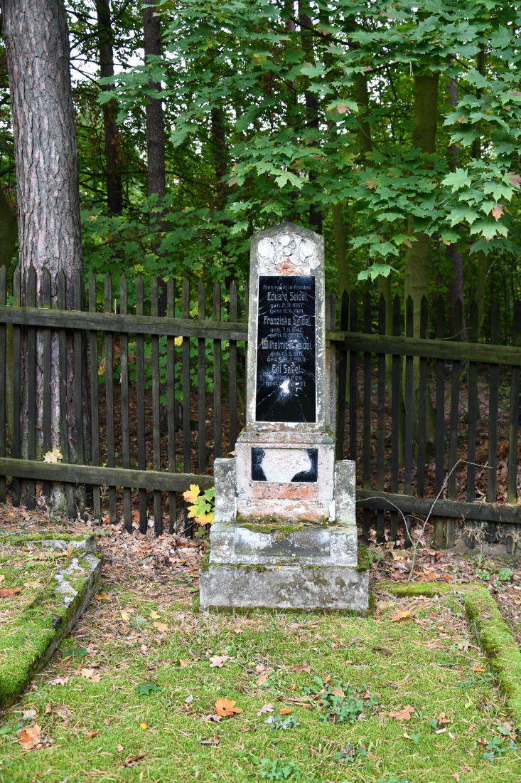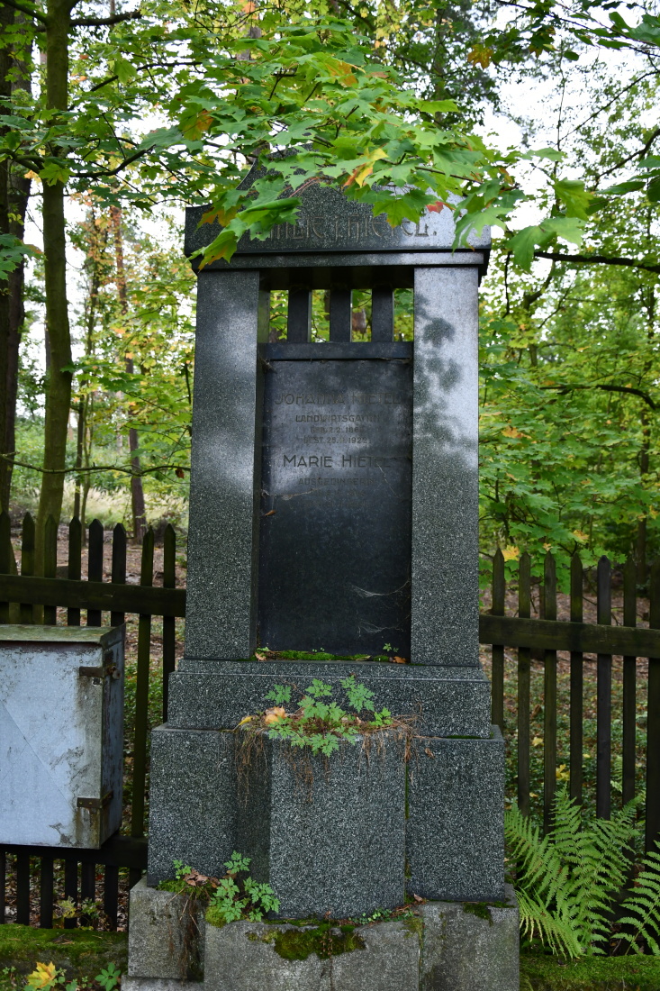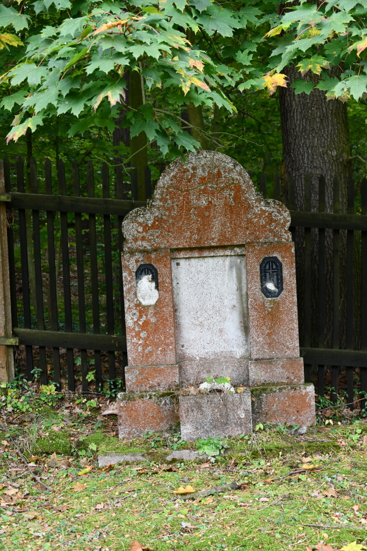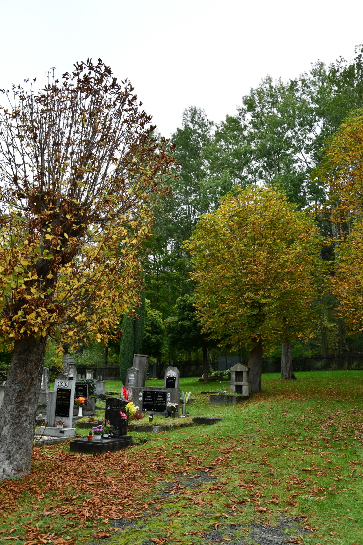 Udržovaný hřbitov s novou ohradní zdí se nachází na okraji lesa. Plocha hřbitova je plná starých rozpadajících se náhrobků.