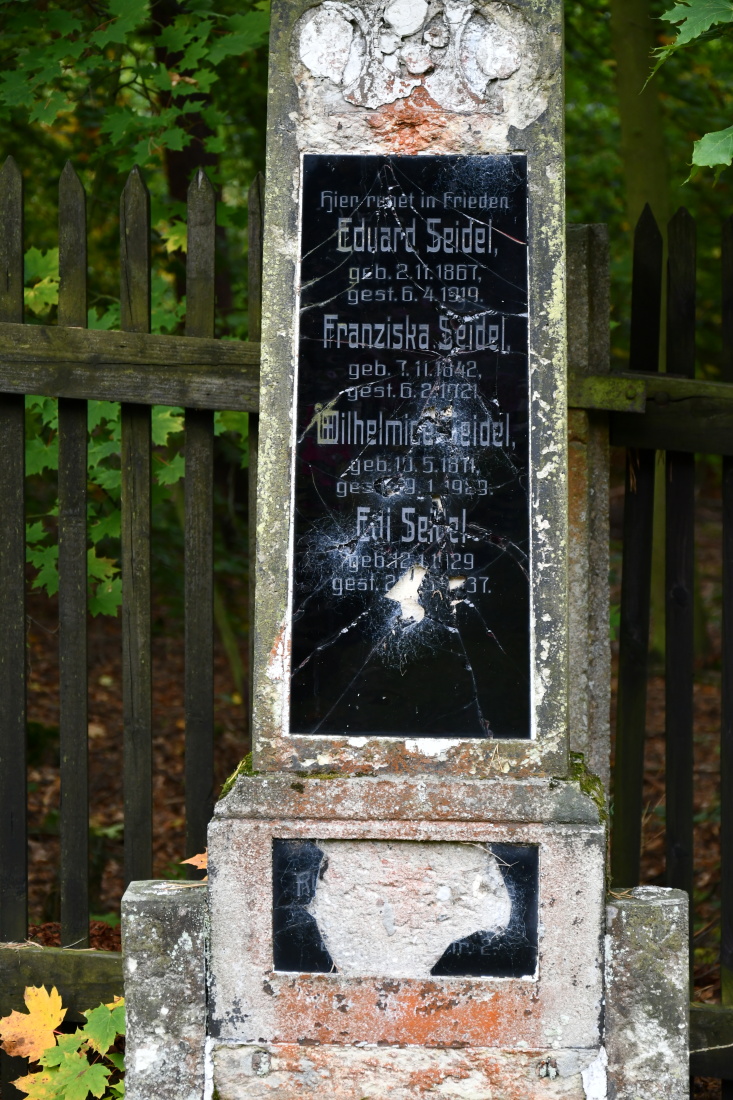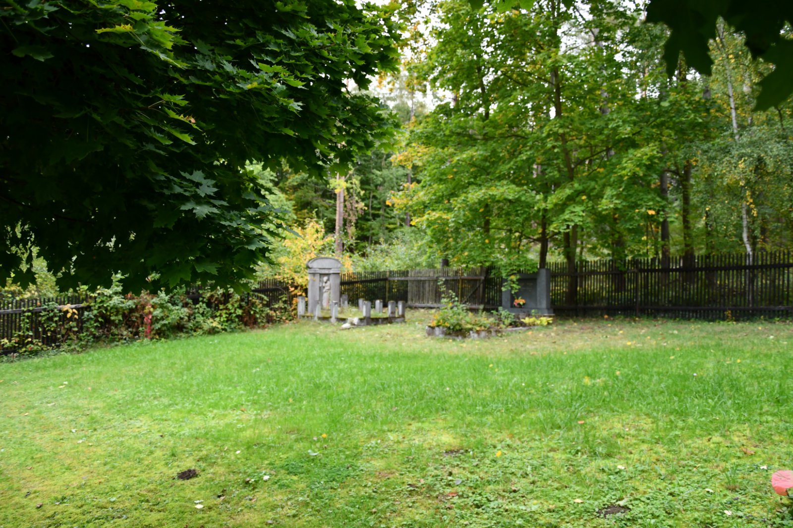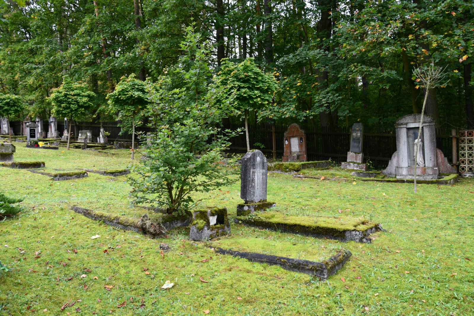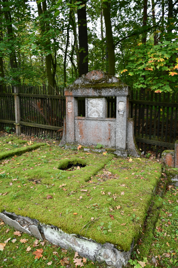 Udržovaný hřbitov s novou ohradní zdí se nachází na okraji lesa. Plocha hřbitova je plná starých rozpadajících se náhrobků.