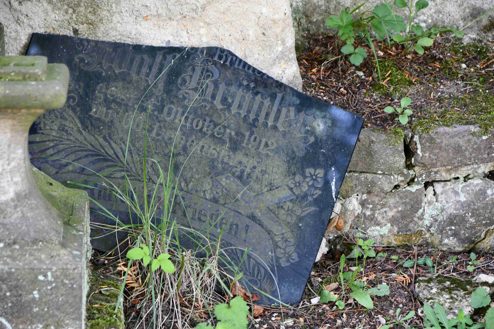 Na celé ploše hřbitova je možné najít staré náhrobky, většinou původních německých obyvatel, které nejsou v dobrém stavu. Řada z nich je odstraněna a složena na hromadu.