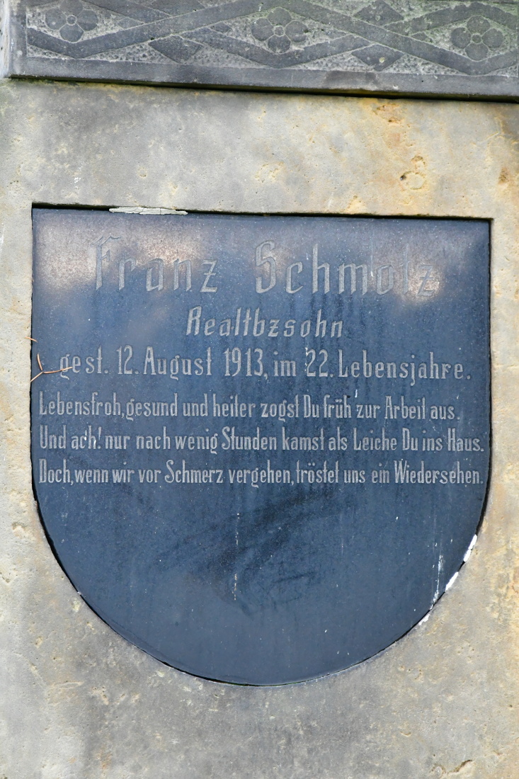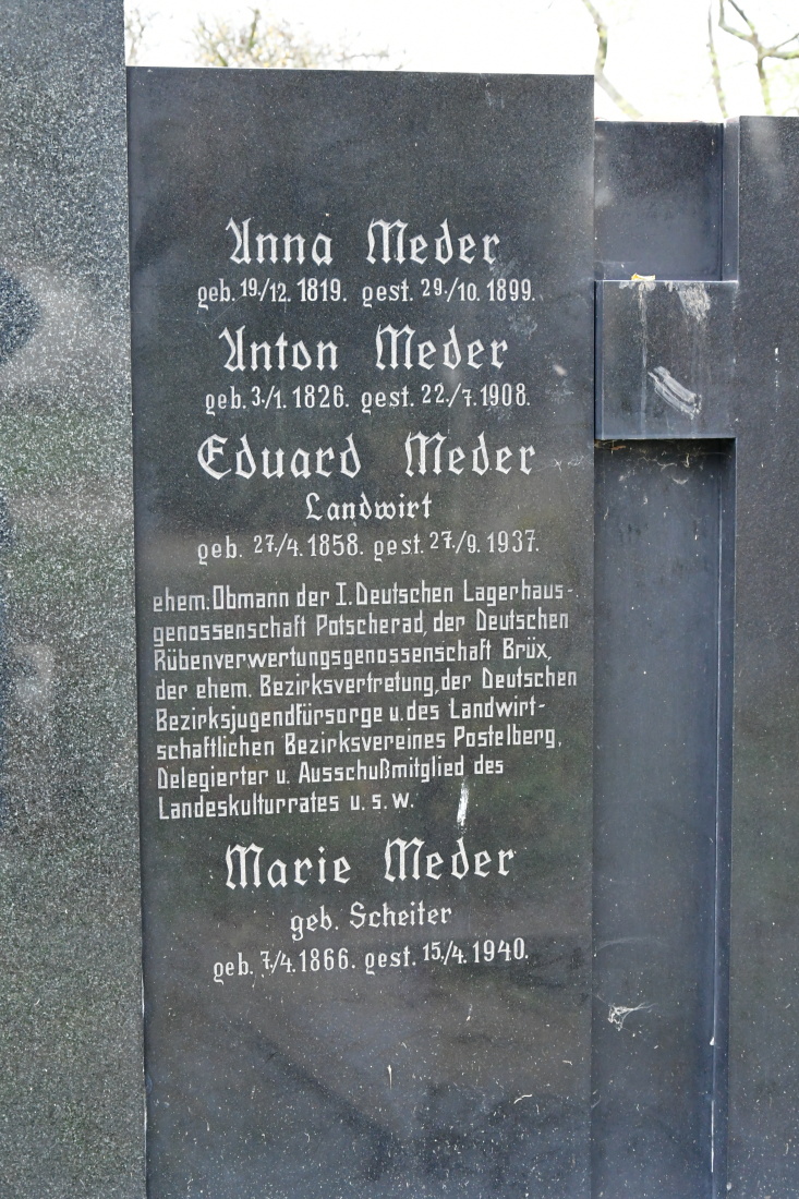 Velký hřbitov ohraničený opravenou hřbitovní zdí se nachází poměrně daleko za obcí u silnice směrem na Počerady. Jde o stále fungující hřbitov. Je rozdělen vnitřní zdí na dvě části. Na ploše hřbitova se nachází řada v podstatě opuštěných hrobů původních německých obyvatel, většina ve velmi špatném stavu. Nejde však o souvislé pokrytí plochy hřbitova náhrobky, jsou zde velké volné plochy vzniklé pravděpodobně odstraněním starých hrobů. Márnice je opravená.