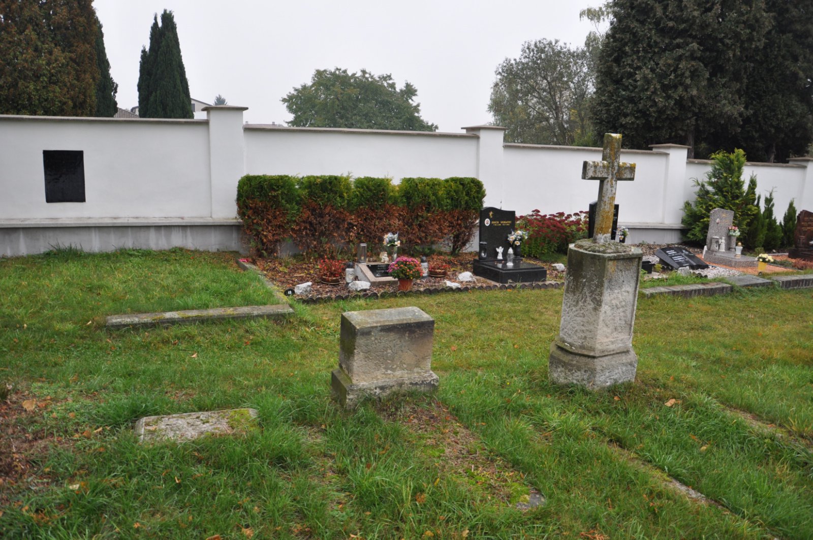 - Obnovena vč. náhrobků a desek na/u zdi